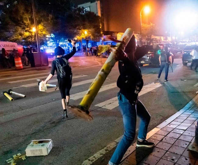 प्रदर्शनकारियों पर तीर-धनुष से हमलासाल्ट लेक सिटी में एक व्यक्ति ने प्रदर्शनकारियों पर तीर-धनुष से निशाना बनाया। इसके जवाब में भीड़ द्वारा उस पर हमला किया गया। लॉस एंजिलिस की गलियों में आगजनी की घटनाएं हुई। प्रदर्शनकारियों ने उत्तरी कैरोलिना में अमेरिकी झंडे को तोड़ दिया।